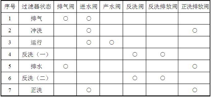 打開過(guò)濾器進(jìn)水閥、排氣閥,待水充滿設(shè)備時(shí)關(guān)閉排 氣閥,打開出水閥。當(dāng)運(yùn)行至進(jìn)出口壓差≥0.05~0.07Mpa 時(shí),運(yùn)行周期結(jié)束,設(shè)備需反洗。