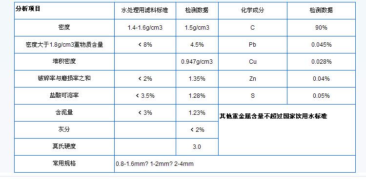 無煙煤濾料在水處理中起的作用好壞,直接影響濾過的水質(zhì),所以在選擇無煙煤濾料的時候,質(zhì)量必須符合國家相關(guān)標準。下為建設部水處理濾料監(jiān)督檢測中心頒布的CJ/T43 -2005《水處理用濾料》中無煙煤濾料的相關(guān)標準。
